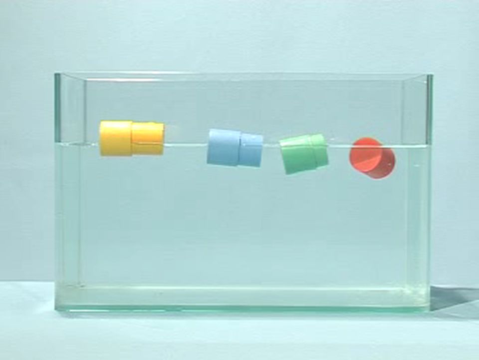 (2)固定磁针:吹塑纸比较轻,将磁针组装在吹塑纸上,利于磁针浮在水面上,并自由转动。