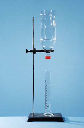 (3)再慢慢地往上面喷水,观察瓶子底部水的颜色和清澈度的变化。