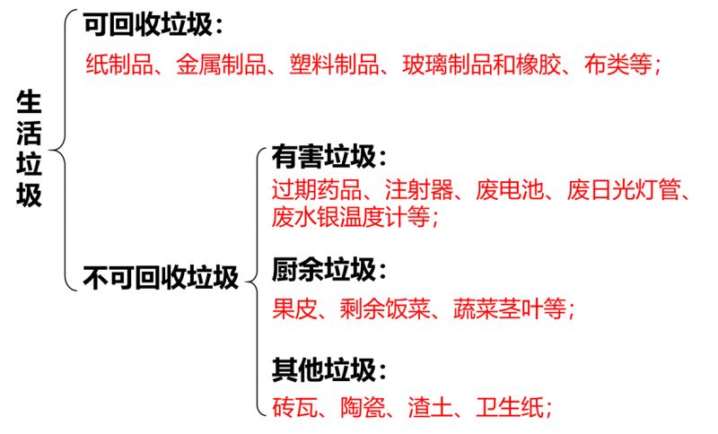 按照(来源)可以分为:生活垃圾、工业垃圾、农业垃圾;