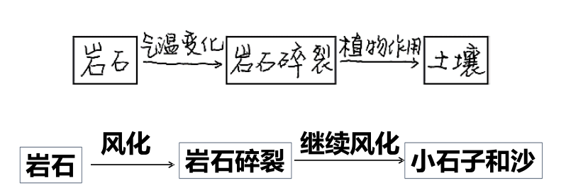 现象: 埋在细石子中的浸过墨水的纸巾经过喷水后,把原来(瓶底的清水变成墨水色)了。