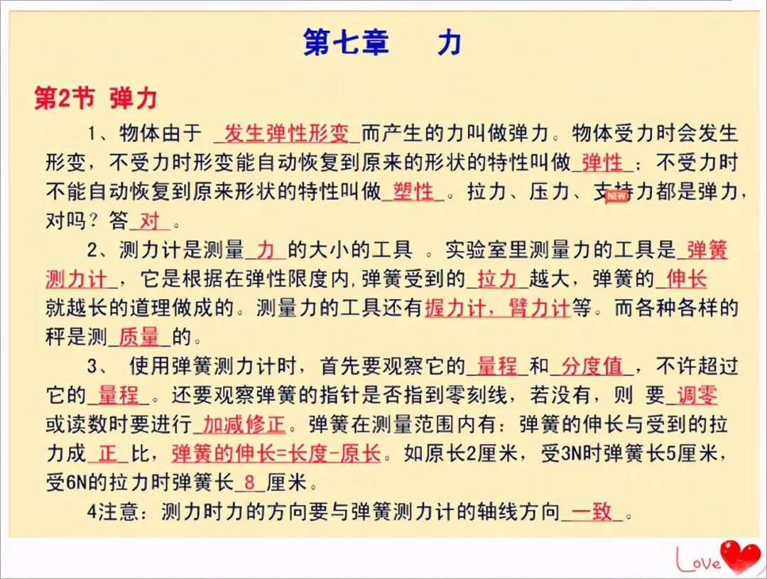 (1)弹性:物体受力发生形变不受力自动恢复原来形状的特性;