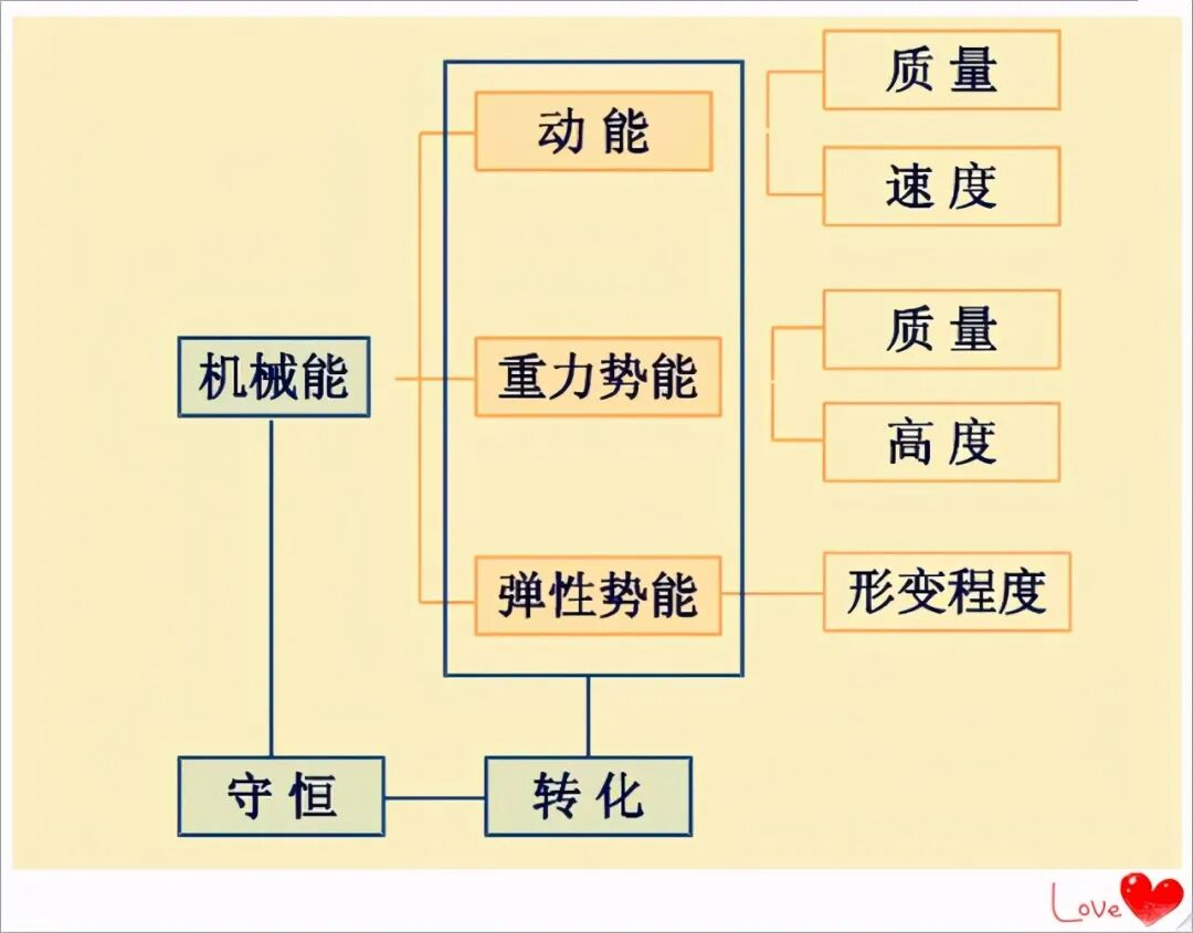 1、机械能:动能与势能统称为机械能。动能是物体运动时具有的能量,势能是存储着的能量。动能和势能可以互相转化。如果只有动能和势能相互转化,机械能的总和不变,也就是说机械能是守恒的。