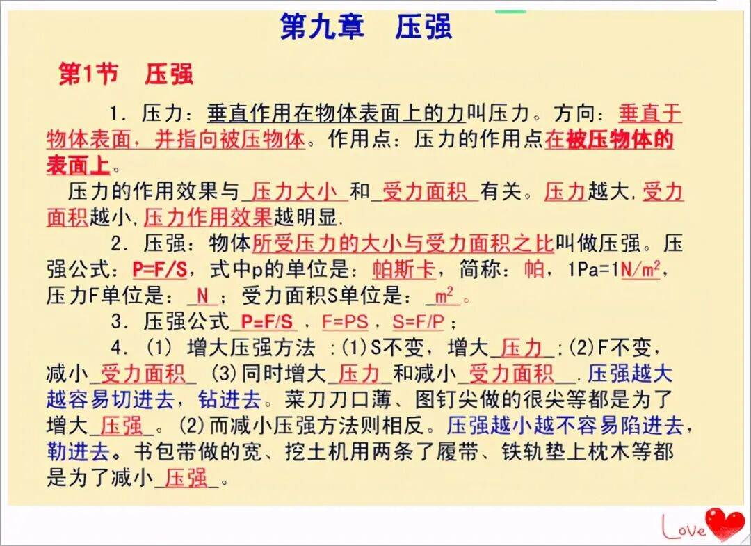 1、压力的作用效果与压力的大小和受力面积的大小有关。