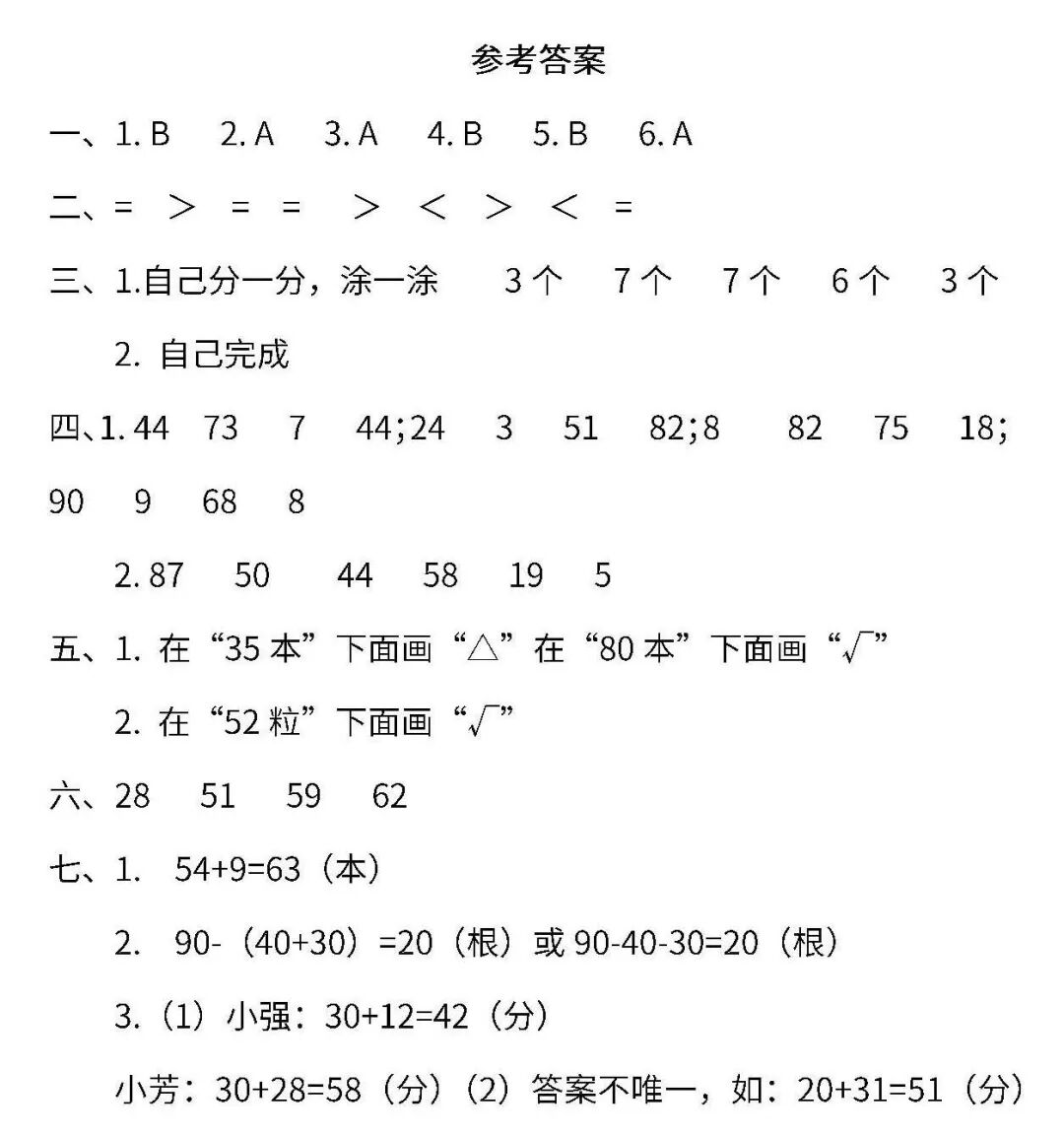 一、1.25,27,29,30 40,70,80 2.53 3.﹥ ﹤ ﹤ ﹤