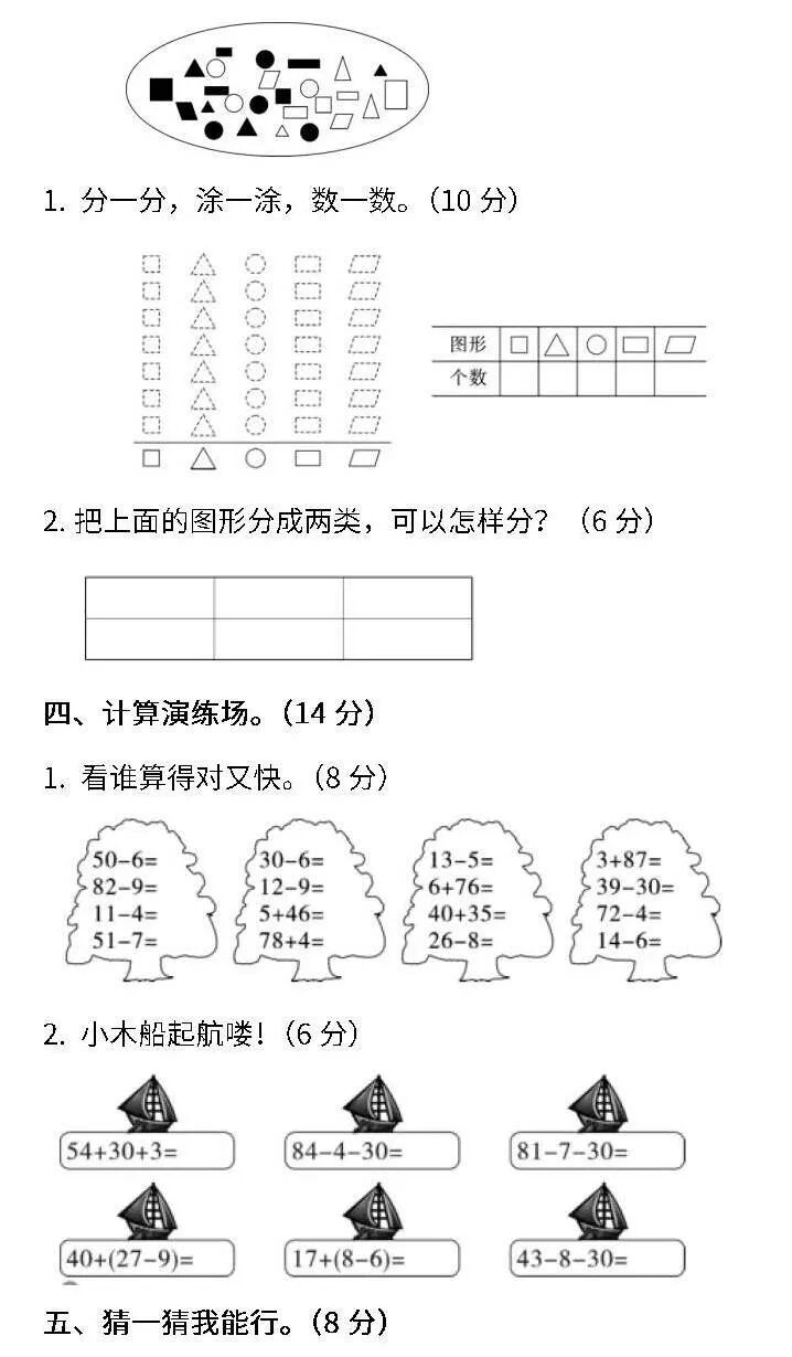 四、数一数、涂一涂、填一填