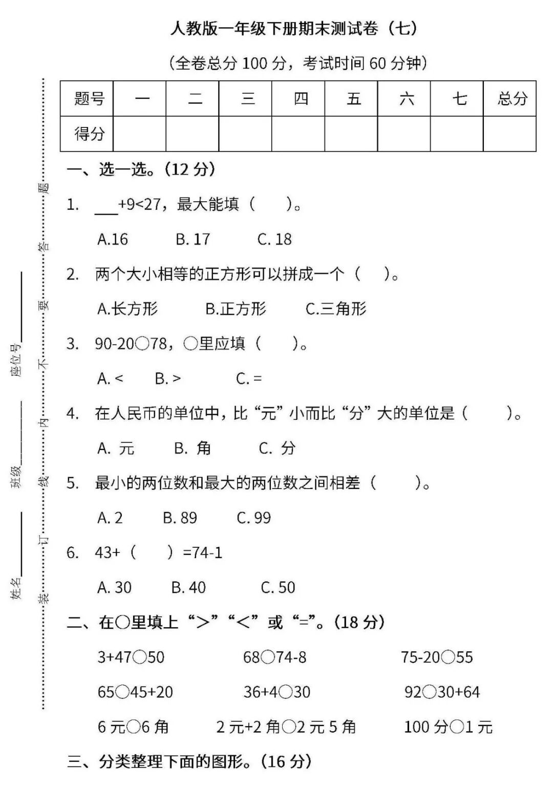 A.角 B.元 C.分