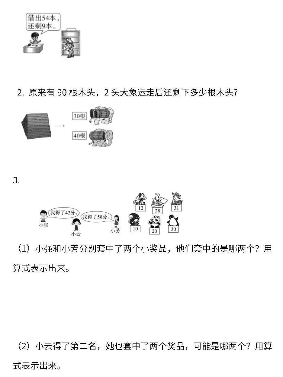 例如:① 游泳的比跳高的多多少人? 28-11 = 17(人)