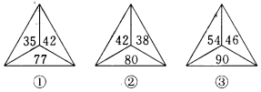 八、提示:图③与众不同。规律是:上面两个数的和等于下面的数。
