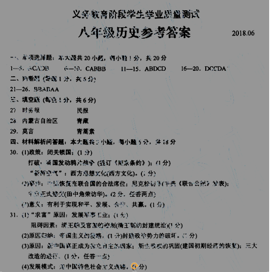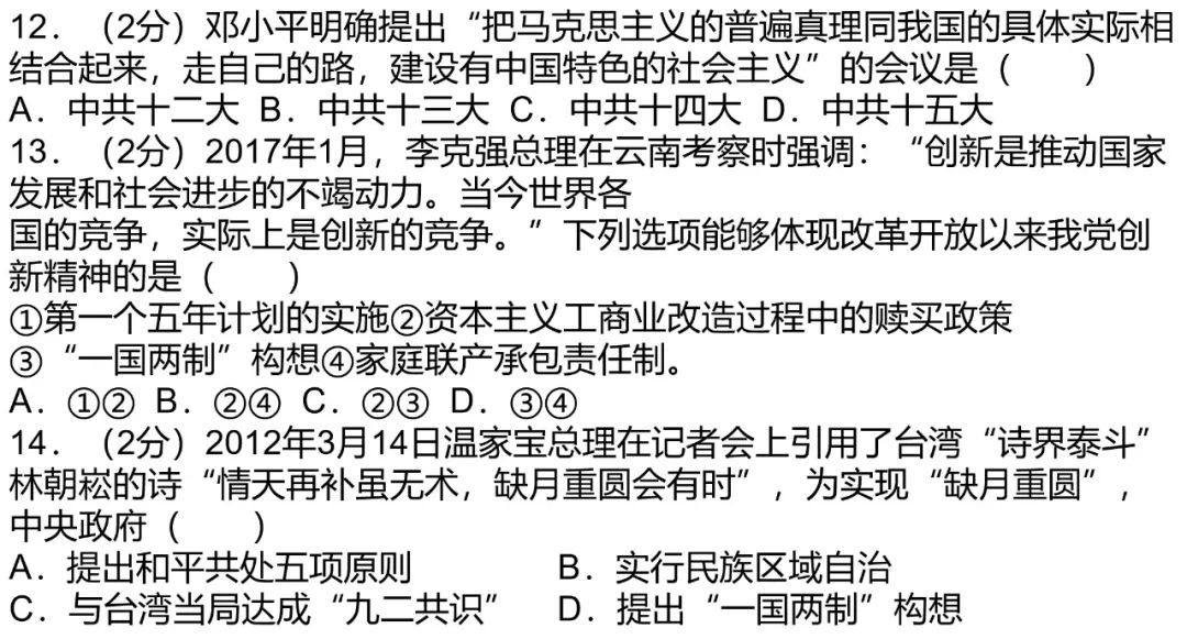 (2)三个事件时间及是怎样改变中国社会性质的?(6分)