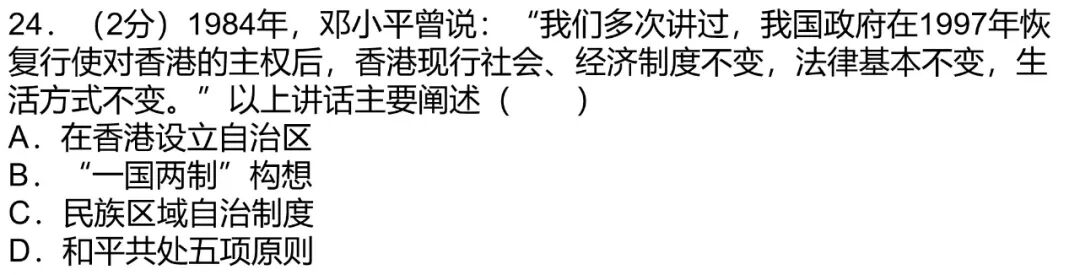10、邓小平曾在不同场合说,香港回归后,香港居民“股照炒、舞照跳、”这是说香港回归后,香港原有的( )