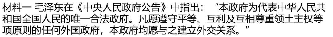 (2)材料二中,结合所学相关知识,中国外交政策成熟的标志是什么?(2分)