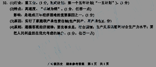 经济:实行家庭联产承包为主的责任制,为农村致富和实现现代化开辟了一条道路。(2分)