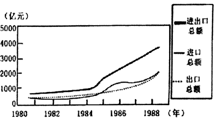 13、右图为20世纪80年代中国进出口贸易总额增长。数据表这种增长趋势主要得益于当时我国