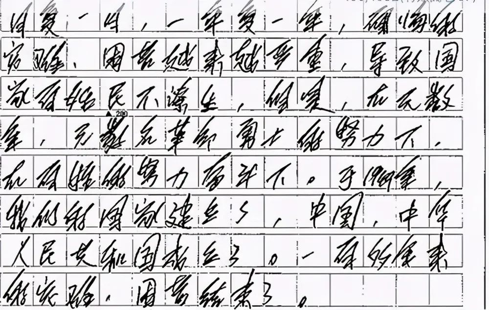 以前小时候为了赶进度或者补作业,我们会想很多招,比如有的将几支笔捆绑在一起,这样可以一次写出很多字,对像一个字罚写一百遍的情况非常有效果,也有学生会把字写得特别快,变成以上这种潦草的草书,可是现很多学生专门却以这样的字体为荣。