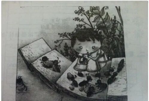 3、珍珍吃面包时不小心把面包屑撒地上了,不一会儿,爬来了一大堆蚂蚁,真真蹲下来仔细蚂蚁们是怎样将食物搬进洞的。请仔细观察图片,将珍珍的观察过程写下来。