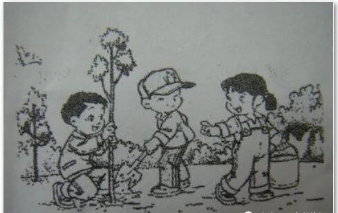 植树节到了,小明、小军和小丽一起来到公园的小山坡上种树。小明用铲子在地上挖了树坑,小军把树放进去,然后小明给它填土,等到快种好了,小丽提着桶说:“我来给小树浇水。”