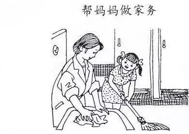 吃完饭后,妈妈在扫地,清理垃圾,小军也想帮妈妈,于是找到抹布在帮妈妈擦桌子,看到小军这么勤劳,妈妈高兴地笑了。