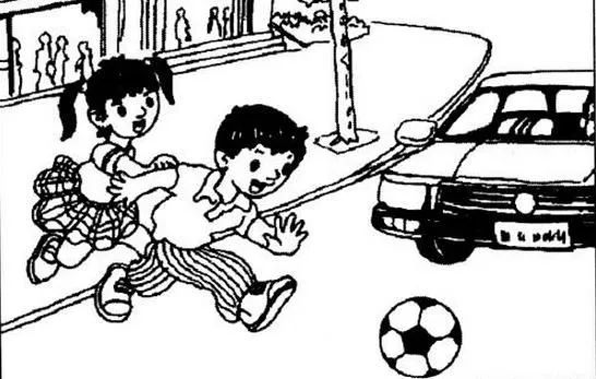 这时,强强的左边开来一辆小轿车。看到这一切的红红惊慌失措地大声呼叫:“强强,汽车来了,危险!不要捡球啦!快回来!”与此同时,她冲向前,伸出右手一把抓住强强的胳膊。汽车司机看见前面冲出一个小男孩,吓得脸色发青,马上紧急刹车。