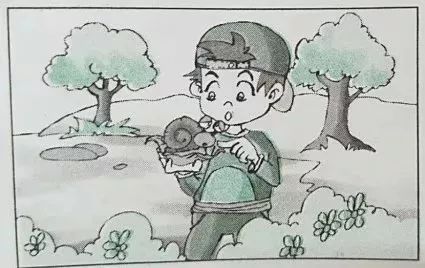 今天,老师要我们捉蜗牛,同学们马上去找。有的到树叶底下去看,有的到土里面翻。我来到树林里,找呀,找呀,终于找到了一只蜗牛,我高兴得跳起来,说:“我找到了,找到了!”我连忙把蜗牛捉到树叶上,再捡一片树叶盖在上面。回到教室里,我仔细观察了一下,发现蜗牛有两对触角,身后好像背了一座小房子。我想:蜗牛真有趣,下雨淋不着,太阳晒不着。