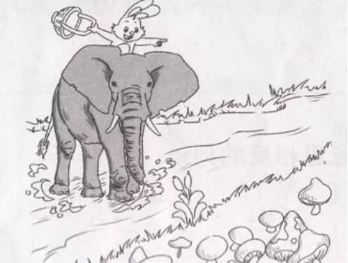 采了一篮子的蘑菇,小兔乖乖心想:今天要是没有大象伯伯的帮忙,怎么能采到那么多的蘑菇啊!我得谢谢他,晚上邀请他来家里喝蘑菇汤吧!