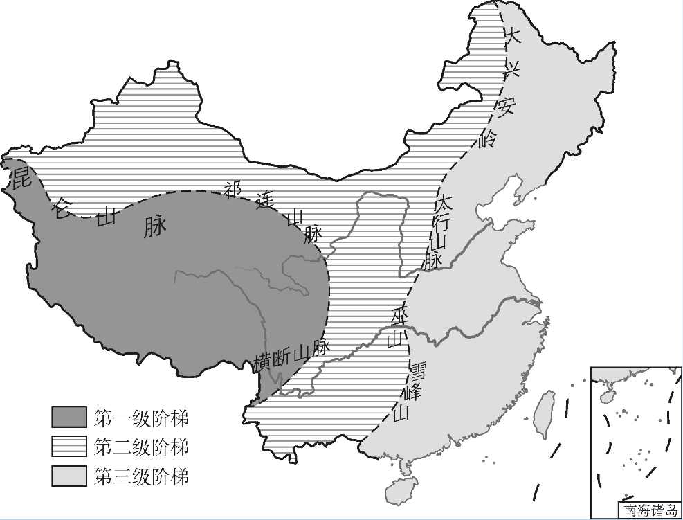 第一阶梯和第二阶梯界线:昆仑山脉、祁连山脉和横断山脉;