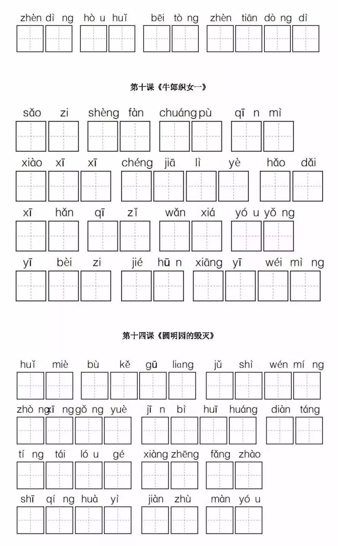 五年级语文上册看拼音写词语