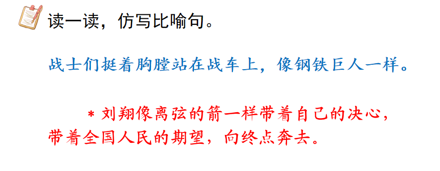 3、读下面的句子体会字里行间传达出的热烈、庄严的气氛。再从课文中在课文中找出这样的句子,在旁边作批注,和同学交流。