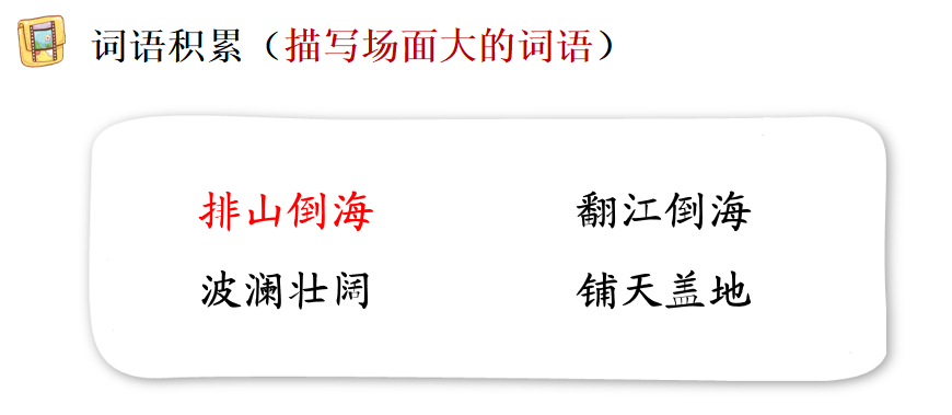 描写场面的词语:排山倒海 人声鼎沸 锣鼓喧天 人山人海 火树银花 熙熙攘攘 人欢马叫 蔚为壮观 车水马龙 万人空巷