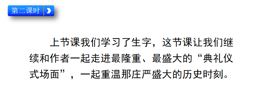 2、课文按照开国大典进行的顺序叙述,先讲大会开始前会场上的情况;然后讲典礼的主体部分——毛主席宣布中华人民共和国中央人民政府成立、升国旗、宣读中央人民政府公告;接着讲阅兵式的盛况;最后讲群众游行。