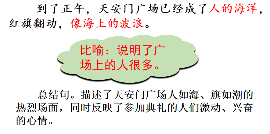 (2)到了正年,天安门广场已经成了人的海洋,红旗翻动,像海上的波浪。