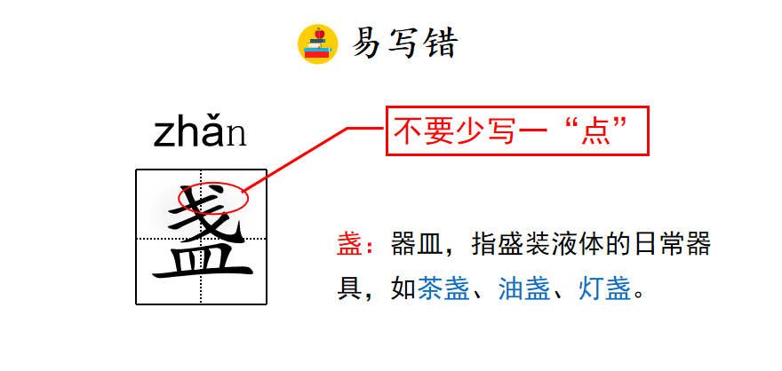 盏:灯盏 酒盏 茶盏 油盏 一盏灯