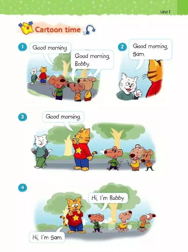 我们与朋友见面打招呼时,可以用“Hi./Hello.”,朋友仍可以用“Hi./Hello.”回应。