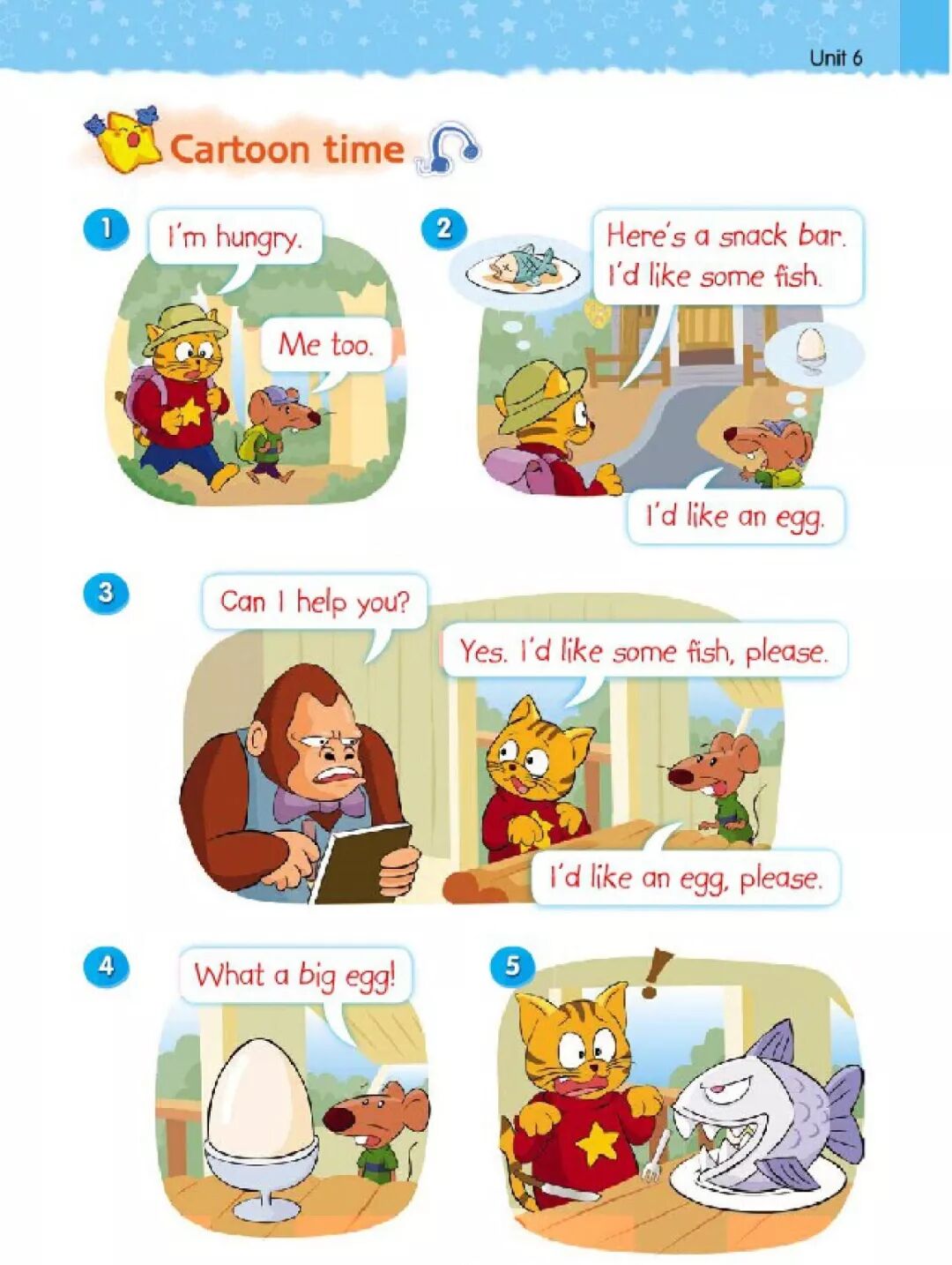 ❸ What would you like, Su Hai? I’d like a sandwich and a pie.