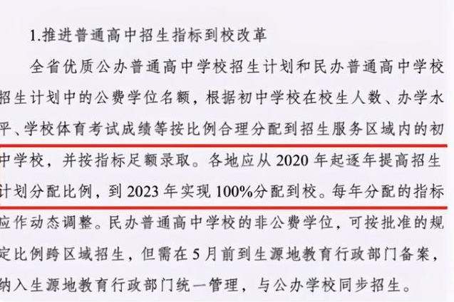 再加上公办学校禁止复读和部分地区的中考禁止复读,更是让中考的录取比例连一半都达不到。为此很多家长也都表示反对,但时代的发展就是这样,家长能做的也就是默默地鼓励和督促学生更好地学习,获得更高的分数,这样才能避免在中考中不被淘汰。在中考改革之后,很多家长在督促学生学习的同时,也表示了内心的担忧。家长们认为,中考的录取比例不应该降低,这样会让更多的学生考不上高中,还有走弯路的风险。毕竟初中毕业也才15岁左右,即便是职高毕业也才18岁,18岁就过早地进入社会,给学生带来的影响都是非常大的。也许是考虑到了这样的问题,也是为了更多的学生在中考能顺利进入高中,教育部公布了一个关于中考的新政策,也是一个好消息。那就是今年将继续增加指标到校的名额,到2023年要实现指标到校100%分配。指标到校的名额多了,未来会更多的初中生进入到高中学习,而不至于被分流到职高和技校。教育部的这一项新政策,让家长们更是着实的高兴不已,这也意味着初中生或将有机会直升高中。虽然大部分的家长都表示高兴,但也有部分家长表示不赞成。原因就是为什么要到2023年才实现,那今年中考的学生不就享受不到了吗?还有的家长表示:指标到校名额多了,考上高中的人数就多了,也就是说大学生的数量就多了。本来就业就难,现在就业不是更难。还有的家长表示:指标到校100%分配和中考录取比例调整为5:5,这两者不是自相矛盾嘛,一个降低一个升高,搞不懂?分析:在笔者看来,调整中考录取比例以及禁止复读都是在进行教育分层,也是在选择最优质的学生进入高中,乃至大学。同样的也是给学生压力,只有努力学习才能有更好的未来。反之,如果都能考上高中,哪个学生还会努力?再者,提高指标到校的名额,并不是所有的学生都有机会。前提是公立学校,还要是学习好的学生。一般指标到校的名额也不会太多,不可能所有的学生都走指标,那中考就失去意义了。各高中给到初中的指标名额都是有限的,一般20个算是多的,指标到校的名额给到乡镇的中学的名额一般比较多。我们当年是给了17个名额。而这个名额是根据学生的成绩来确定的。因此,想要走指标到校的名额进入重点高中,就需要排名靠前,而不是只有分数高才行。指标到校除了是针对公立学校的学生之外,还需要满足一个条件,就是本地区(本乡镇)的学生。其他地区的学生是没有资格获得指标到校名额的。以沈阳市为例,铁西区的学生跑到浑南区上学,为了有更多的机会考上高中,即便是成绩好也拿不到指标的名额,因为你不是浑南区的学生。我本人当年就是这样的情况。正好在指标的名额内,但最后20名开外的都进去了,我没进入,就是因为是外乡镇的学生。所以,想要走指标到校的学生,最好是不要跨地区上学,除非分数够高自己考上重点高中。最后一种就不是很光彩了,靠自家的人脉和背景,本来不在名额之内,但是家里有资源一样也可以。巧的是,我刚好遇到一个,当时是22名还是23名,具体的记不住了。名额是17个,我是第16名。就算顺延也是到18。怎么也轮不到这个同学。但是他却考上了重点高中,还是走名额上去的。所以,有的时候人脉也是一种能力。2021年中考的改革让50% 的初中生考不上高中,但指标到校的名额增加,也增加了中考的升学率。虽然名额有限,但也是一种升入高中的方式。所以,想要顺利考上高中的学生,一定要更加的努力才可以。关于教育部的中考新政策,你怎么看?你支持提高指标到校的名额吗?欢迎在下方留言评论。若喜欢本文,敬请转发![]()