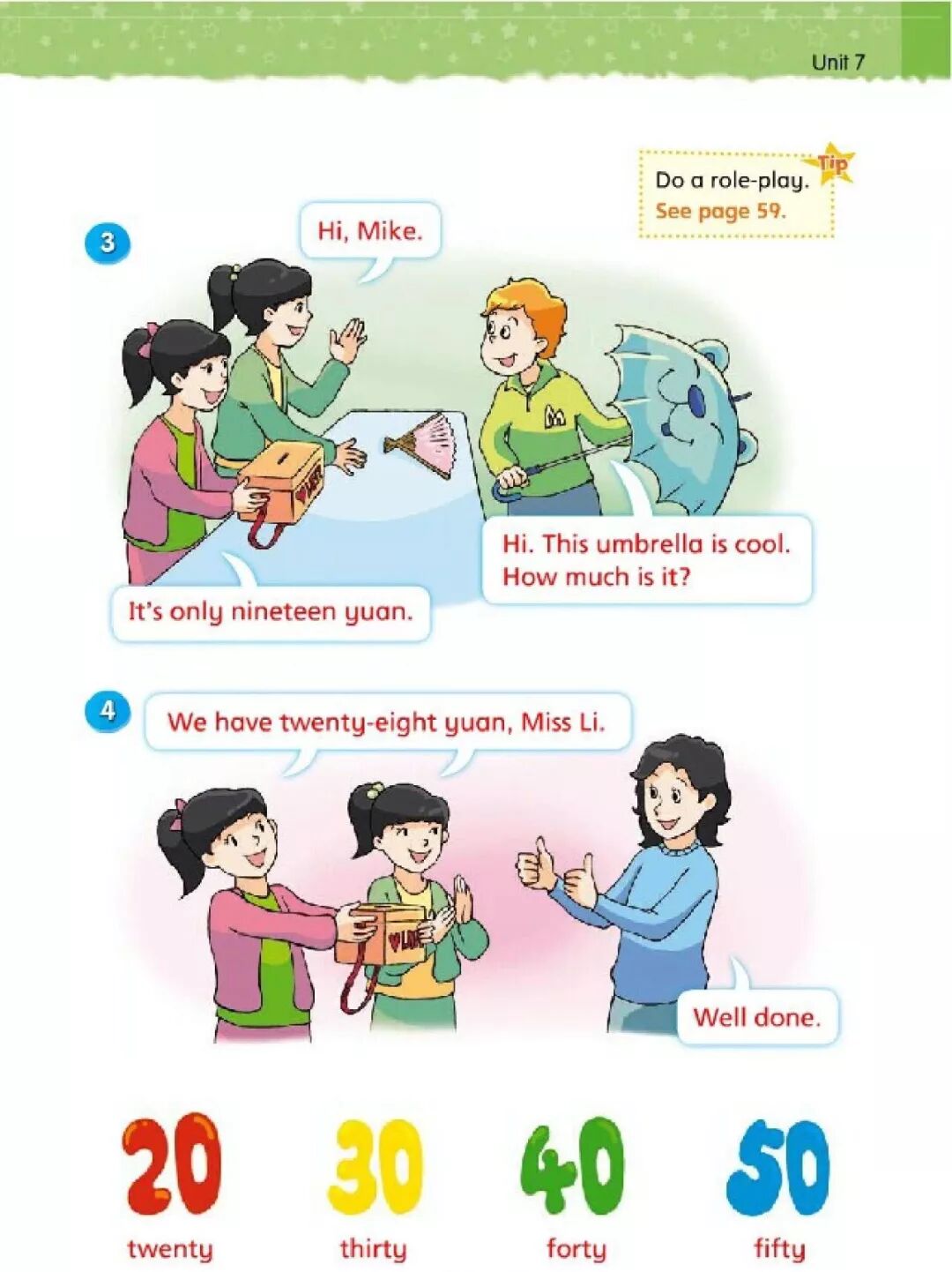 早上好。我能帮你吗?我想要那把雨伞。多少钱?30元。