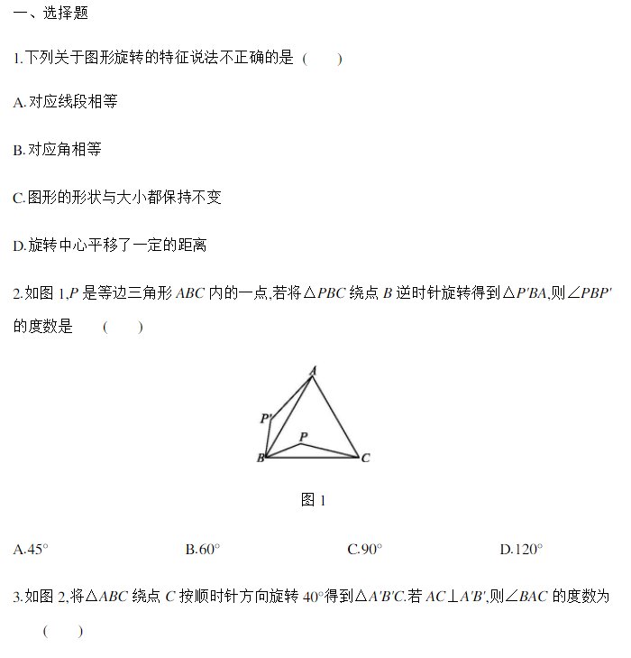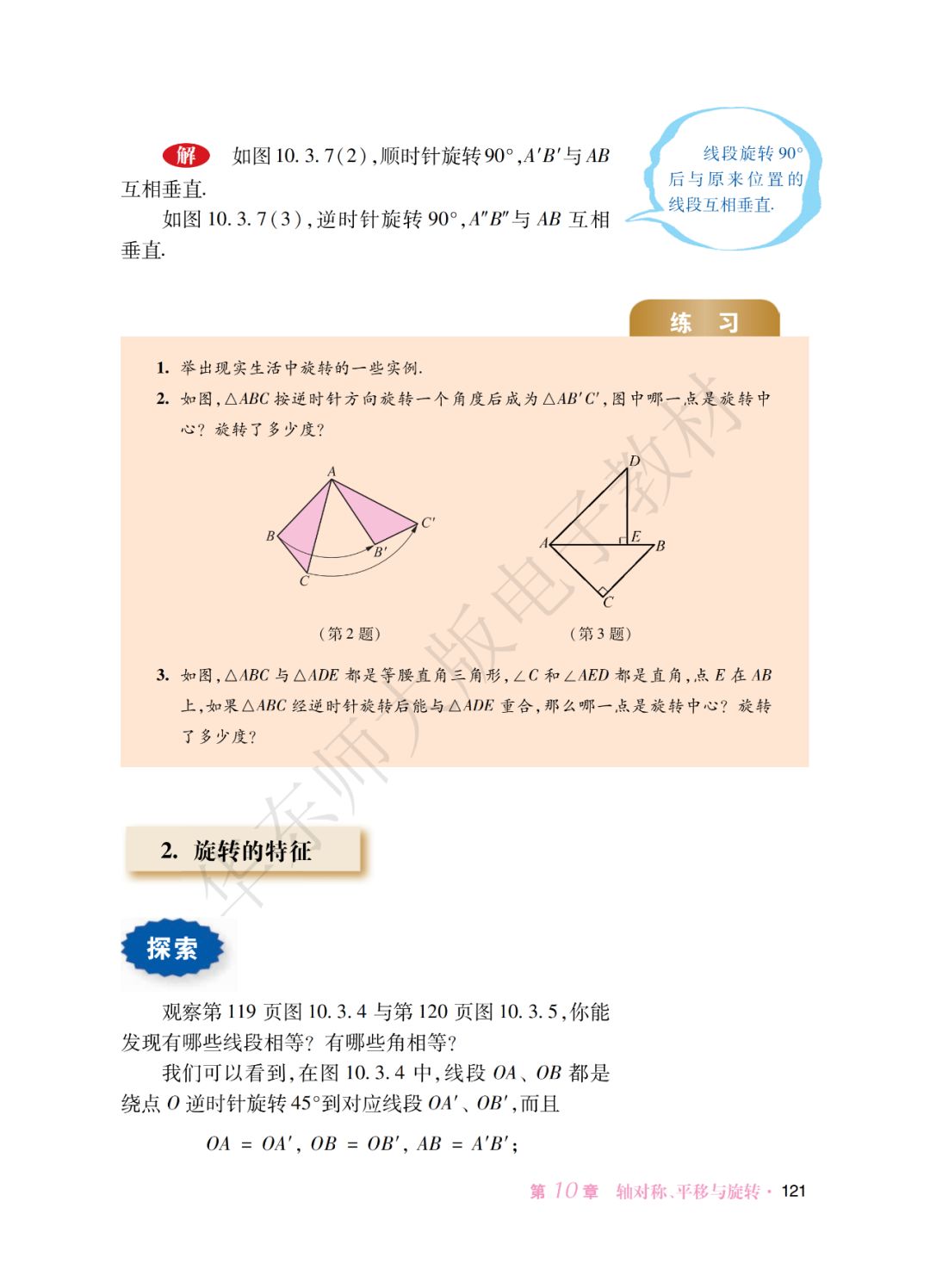 华师大版数学七年级下册10.3.2《旋转的特征》(含教材|微课|课件|练习)-一点通教学网