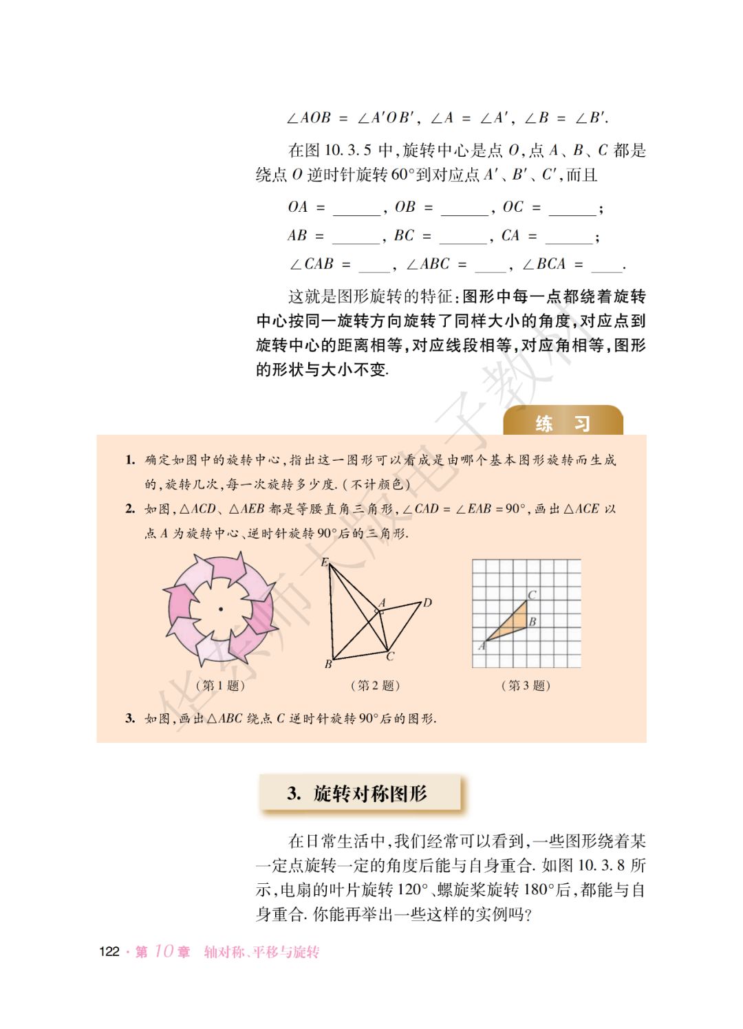 华师大版数学七年级下册10.3.3《旋转对称图形》(含教材|微课|课件|练习)