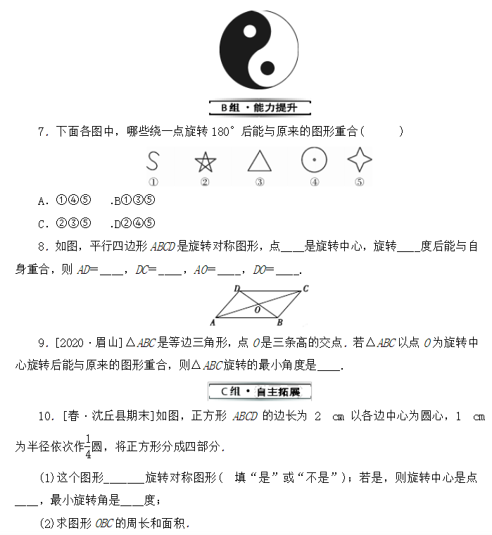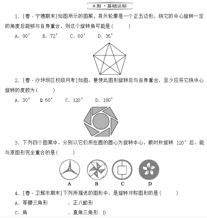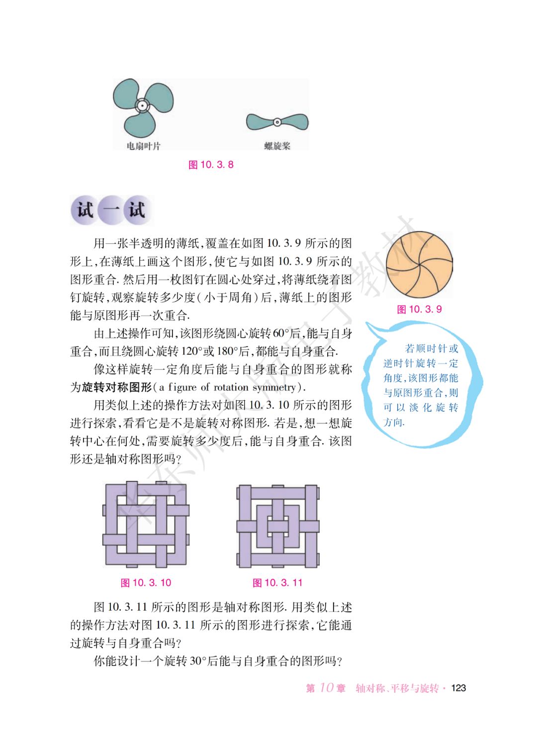 华师大版数学七年级下册10.3.3《旋转对称图形》(含教材|微课|课件|练习)-一点通教学网