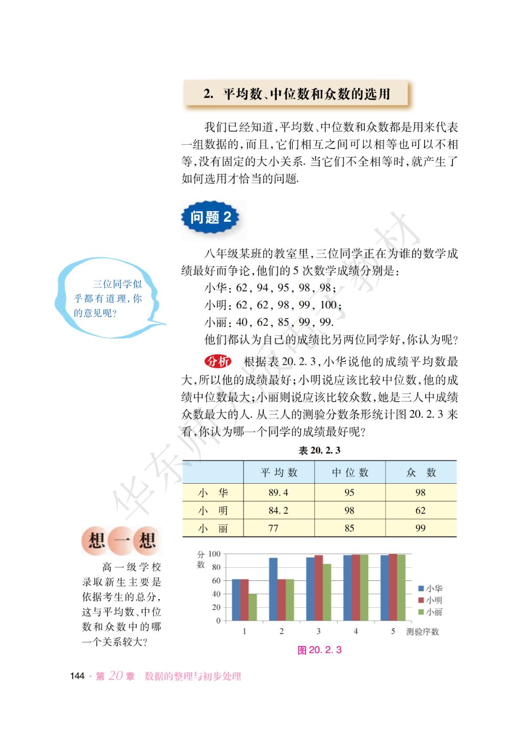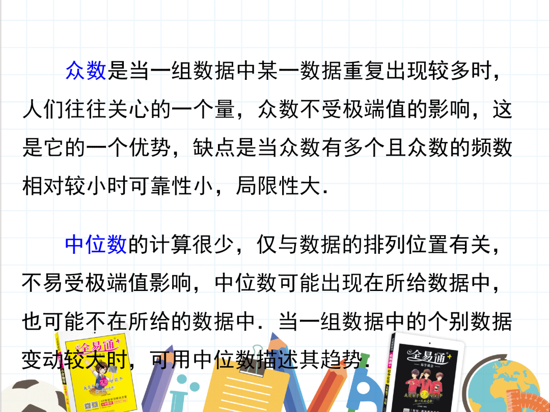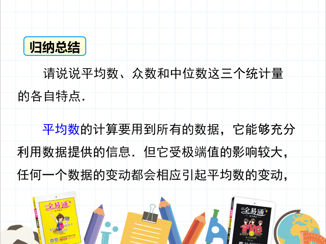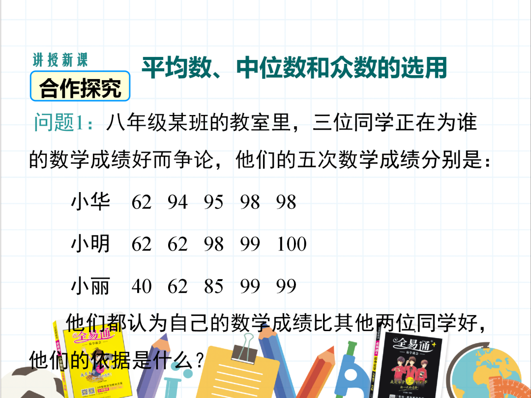 华师大版数学八年级下册20.2.2《平均数、中位数和众数的选用》(含教材|微课|课件|练习)