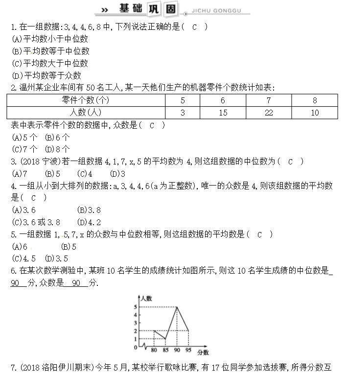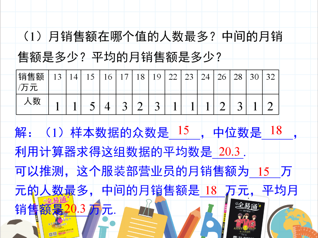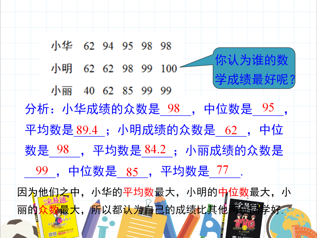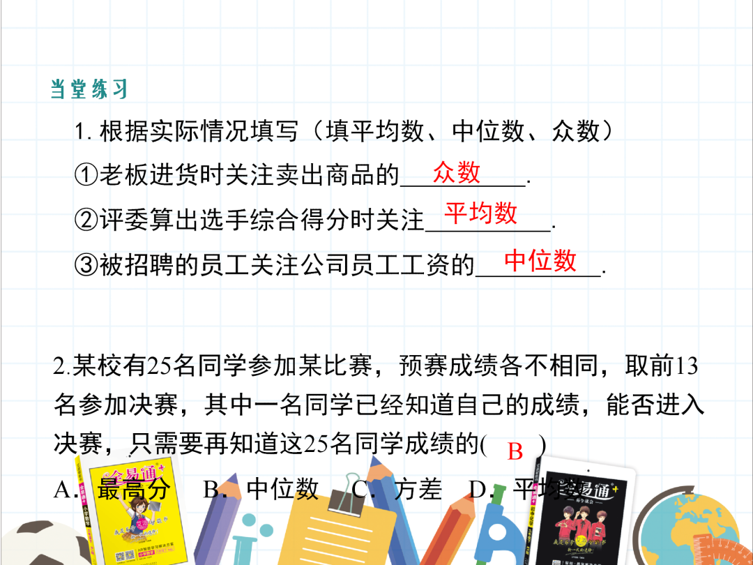 华师大版数学八年级下册20.2.2《平均数、中位数和众数的选用》(含教材|微课|课件|练习)