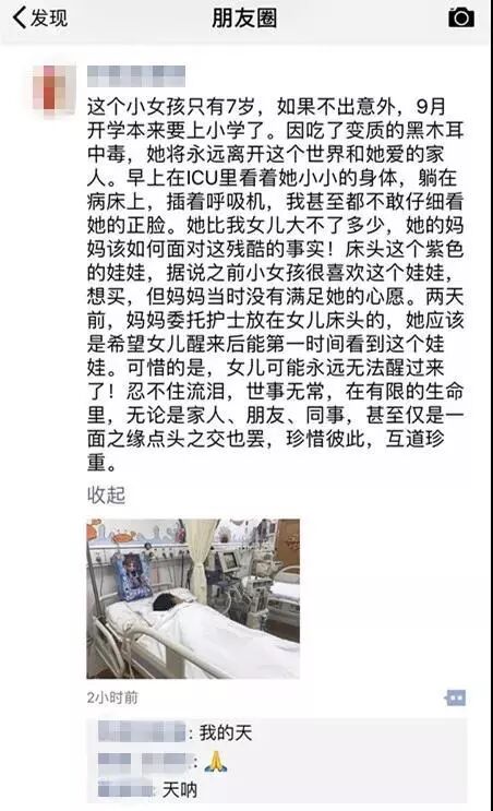 2017年7月,福州总医院急诊重症监护室里,28岁辽宁姑娘毕雪因为一碗泡了两天的黑木耳,陷入昏迷,出现肝衰竭、肾衰竭、心肌重度衰竭,全身黄疸。