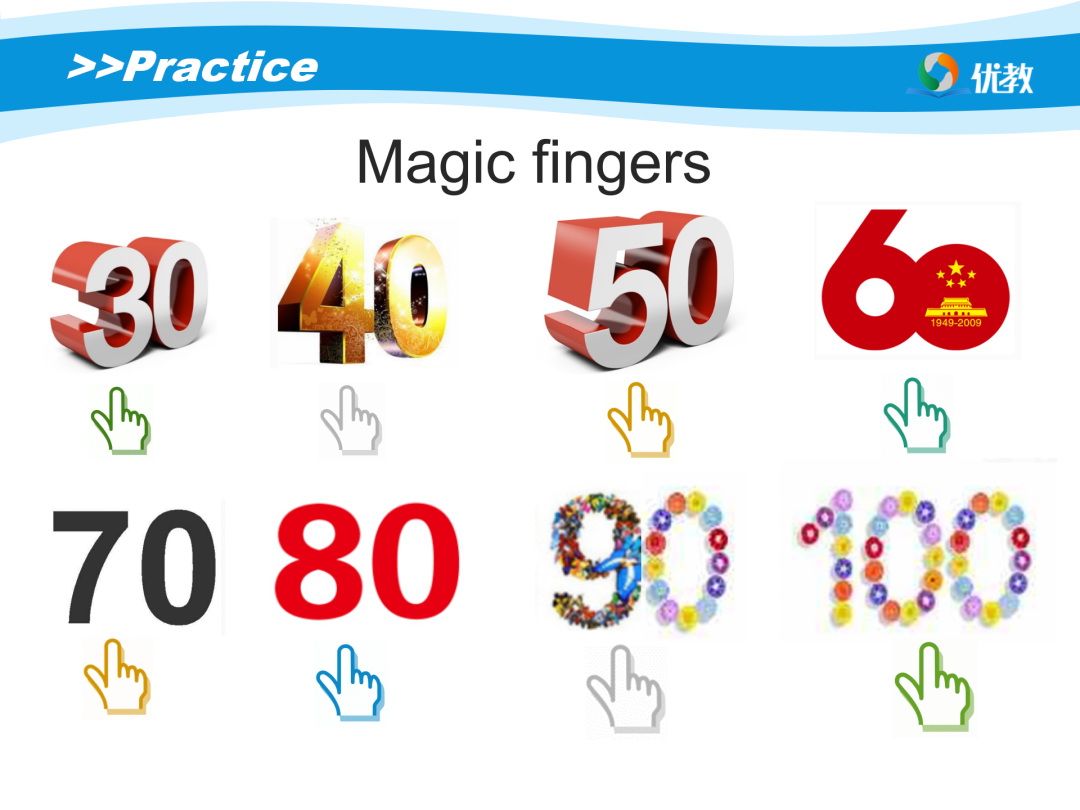 教师让学生拿出所准备的词汇卡片;然后教师说词汇,学生迅速找出相应的卡片举起并大声读岀该词汇。对做得又快又准的学生,教师可予以表扬;而对于动作稍慢的学生,教师可与其击掌并鼓励说:Come on! (加油!)