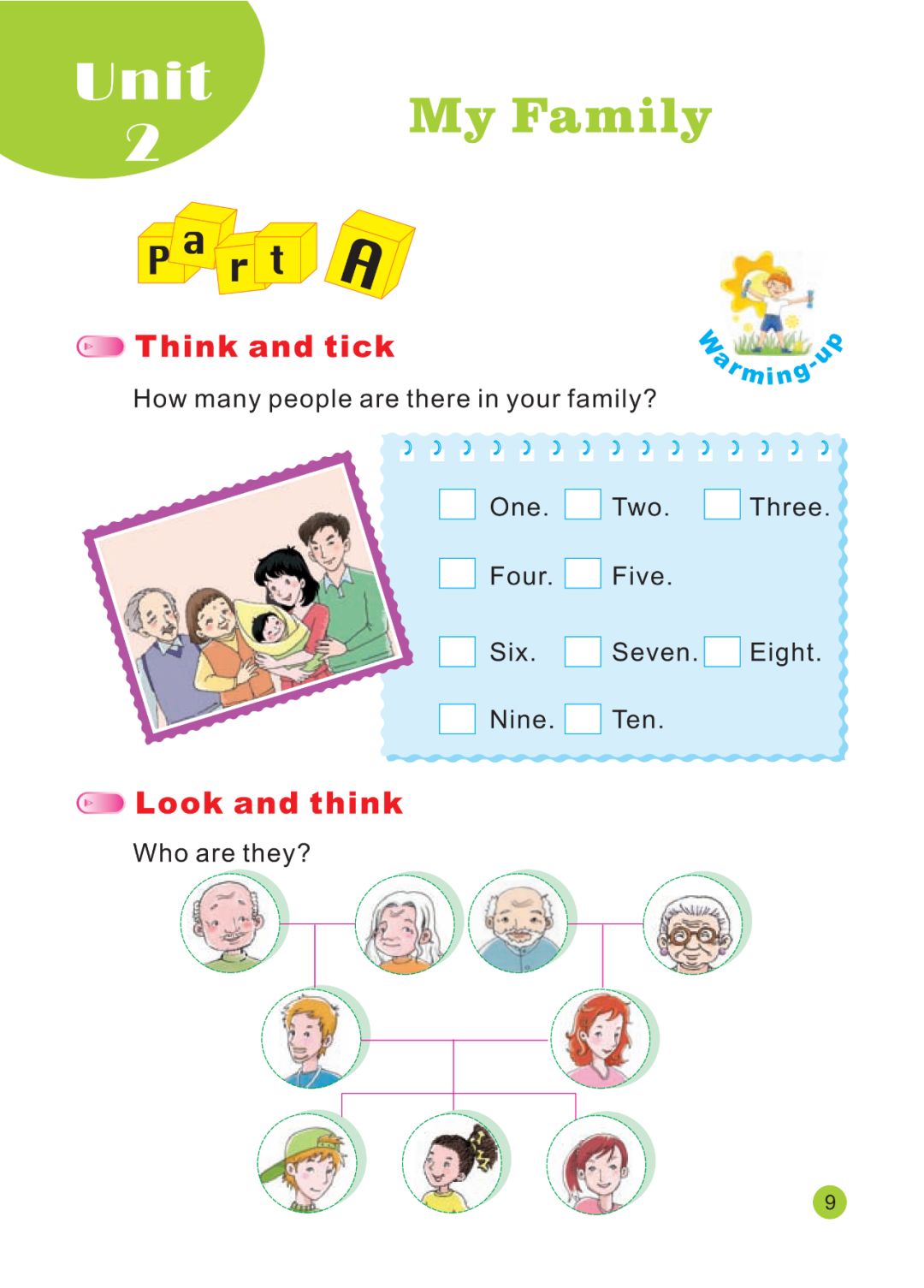1. brother 2.father 3. mother 4.sister5. grandma 6. grandpa