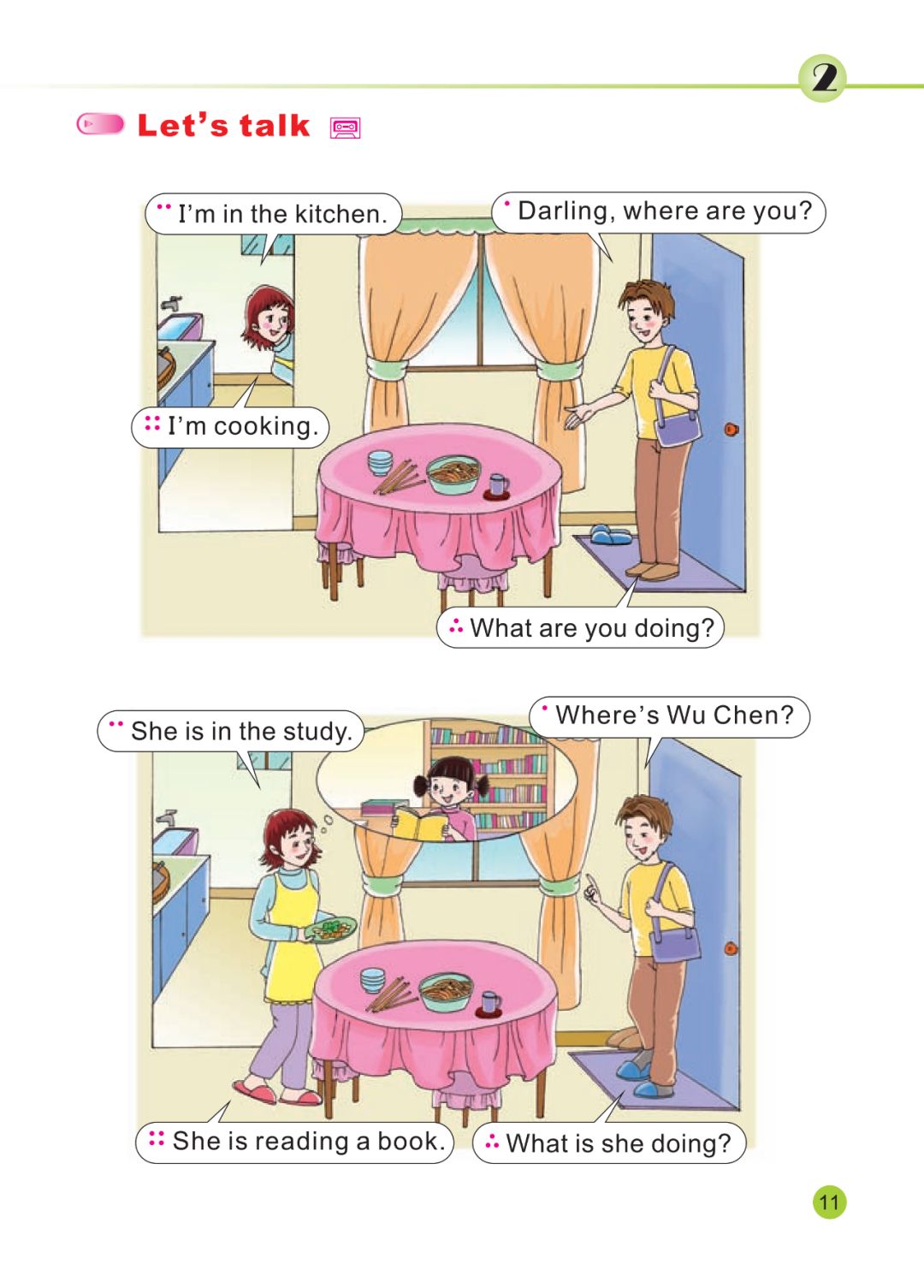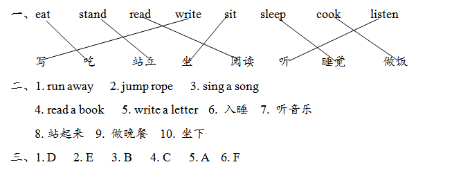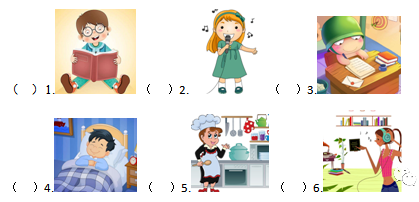 A. My mother is cooking dinner. B. The boy is writing a letter to his friend. C. He is sleeping. D. Xiaoming is reading a book. E. My sister likes singing. F. The girl is listening to music. |