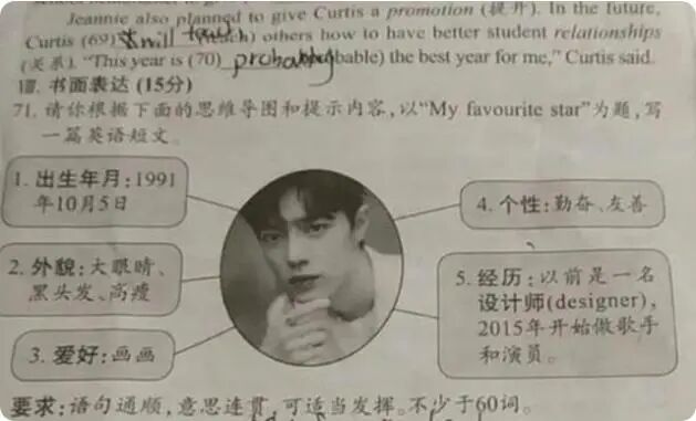 像肖战就被写入了学生的英语作文中,作文的标题就是让学生们写一篇“我最喜欢的明星”,同时下面还把肖战出生、爱好、外貌和个性等特征给了出来,方便不知道的学生们了解,有的题就算把网红明星编入了试卷。但还是有一些含金量的,会考一些东西的,但有的题就没有什么价值了,就像让选鹿晗、吴亦凡、李易峰和物理老师哪个最帅,就有些不理解是想考学生们什么了。看到鲁迅文章逐渐被踢出课本,和大批网红明星被编入试卷的对比情况,有的网友直呼确定不离谱?但大家的看法是不一的,有的网友表示是可以理解的,与时俱进还是可以理解的。时代不同对于明星的定义也是不同的,鲁迅在那个时代也算是明星的,但大批网红明星被编入试卷也反映出来一定的问题。首先,反映出试卷的出题不依照于传统了,越来越追求创新了,网红明星能获得赢得那么多人的喜欢,能够在自己的圈子里占有一定的位置,并一直坚持下去,身上肯定是着值得学生们学习的个性和精神。其次,反映出试卷的出题和答案变得越来越灵活了,提问也变得不一样了,有的是相对直接的,有的是需要学生们想一下的,到底考的是什么,出题灵活了之后,那答案的灵活性也提高了。鲁迅的文章时陪伴了不少学生的成长,有很多学生都是鲁迅的文章长大的,但网红明星被编入试卷也突显和当下结合的方式,毕竟追星在学生们中间还是一个相对普遍的问题,看到喜欢的明星是能够一定程度上提高学习的兴趣,但不同的人是会有不同的看法。觉得追星的学生们是会更容易高分的,可能平时不追星的学生就容易变得没有话说,这应该是大家争议的点吧,每个行业能够冲出来被认识到的人,都是不简单的,是有值得学习的,但学好语文对于学生们是很有必要的。同时也能够更全面地了解我国的文化,学生们在学习语文的过程中是需要花费一些精力的,不光要学好课本上的,还得要注意课外的积累。