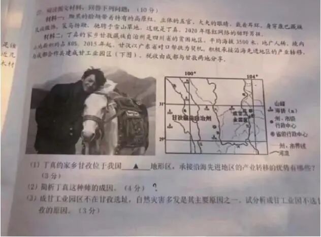 同时还让学生们简析丁真有着高原红这种帅的成因,感觉出题的老师也是平常很关注这一块的,是追星圈子里的吧,真是谁火写谁啊。