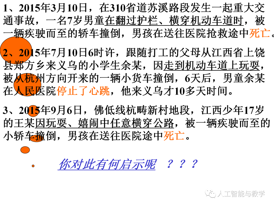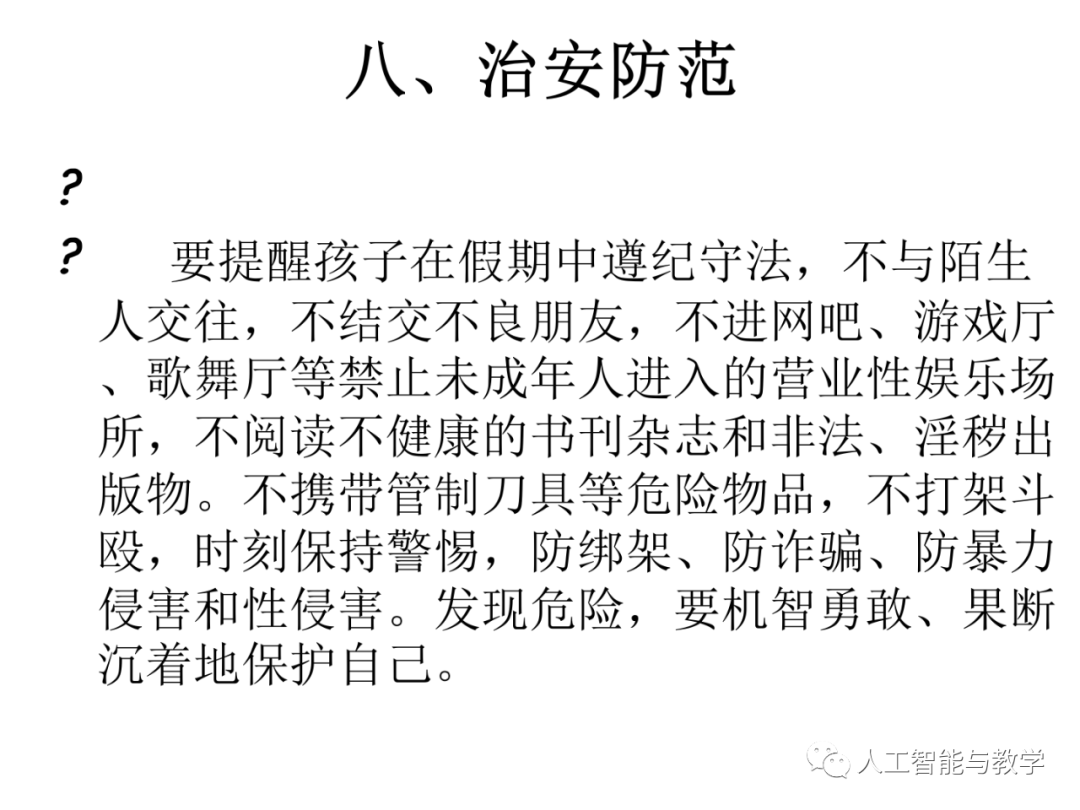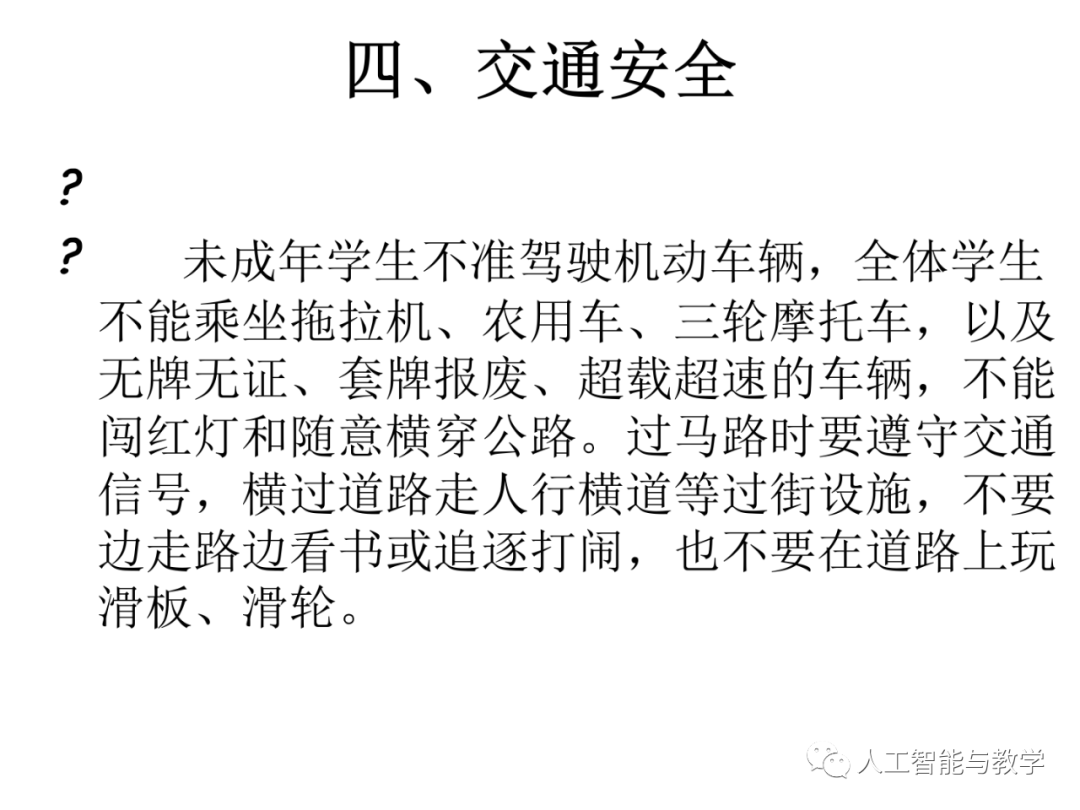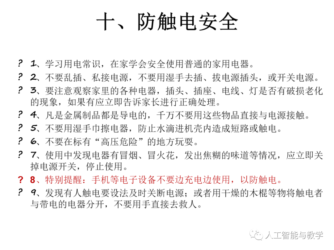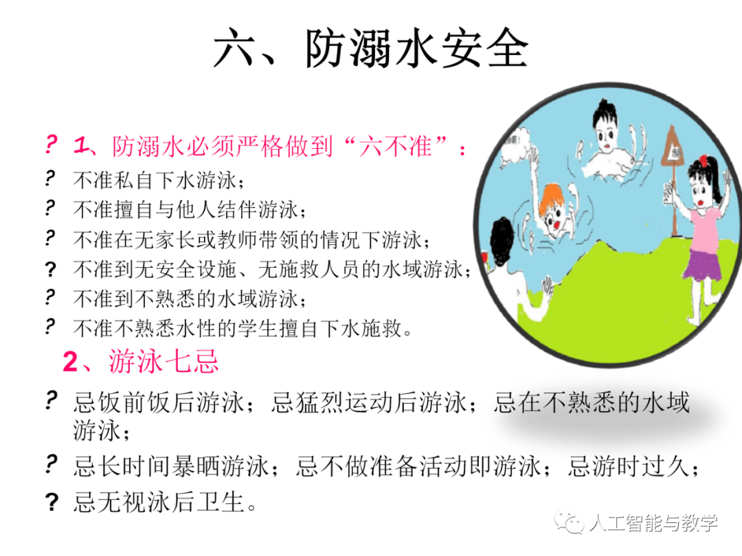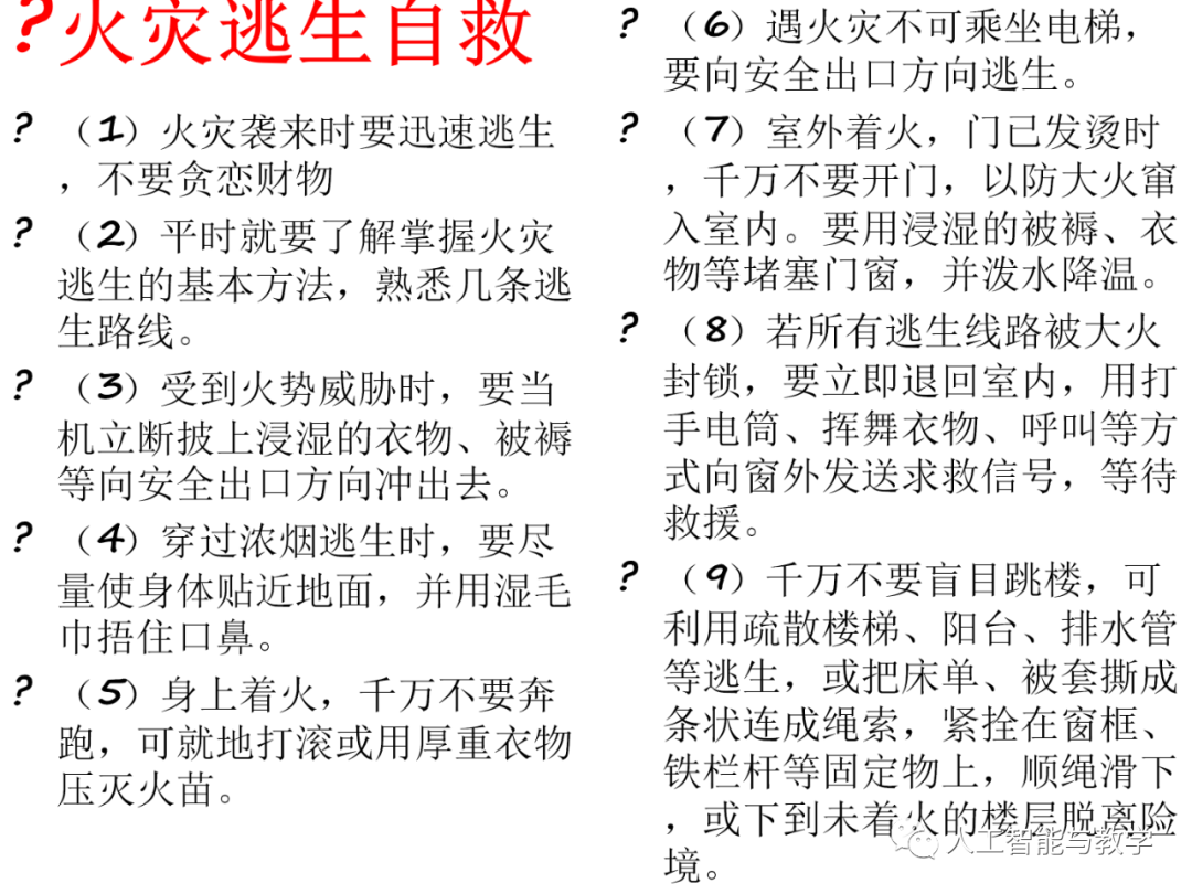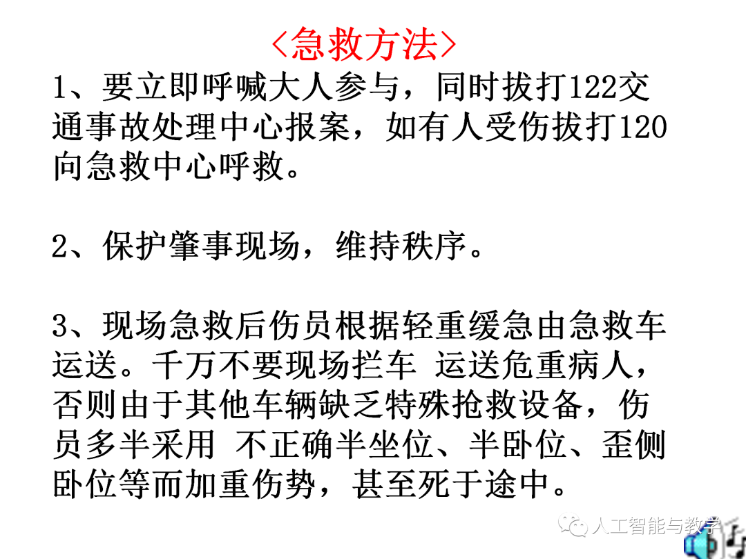 《自护、自救安全教育》主题班会教案 班会主题:自护、自救安全教育 教学内容:学习一些家居安全、交通安全、消防安全等知识。 教学要求:通过学习有关安全知识,使学生树立自护、自救观念,形成自护、自救的意识,使学生安全、健康成长。 教学时数:一课时 教学过程: 一、谈话引入: 同学们生活在幸福、温暖的家庭里,受到父母和家人的关心、爱护,似乎并不存在什么危险。但是,家庭生活中仍然有许多事情需要备加注意和小心对待,否则很容易发生危险,酿成事故。下面就谈谈家居安全要注意什么: 1.用电安全 随着生活水平的不断提高,生活中用电的地方越来越多了。因此,我们有必要掌握一些基本的用电常识。 (1)认识了解电源总开关,学会在紧急情况下关断电源。 (2)不用湿手触摸电器,不用湿布擦拭电器。 (3)电器使用完毕后应拔掉电源插头。 (4)使用中发现电器有冒烟、冒火花、发出焦糊的异味等情况,应立即关掉电源开关,停止使用。 (5)发现有人触电要设法及时关断电源;或者用干燥的木棍等物将触电者与带电的电器分开,不要用手直接救人。 2.安全使用煤气 (1)燃气器具在工作时,人不能长时间离开,以防被风吹灭或被锅中溢出的水浇灭,造成煤气大量泄露而发生火灾。 (2)使用燃气器具(如煤气炉、燃气热水器等),应充分保证室内的通风,保持足够的氧气,防止煤气中毒。 二、游泳时要注意安全 1.游泳需要经过体格检查。 2.要慎重选择游泳场所。 3.下水前要做准备运动。 4.饱食或者饥饿时,剧烈运动和繁重劳动以后不要游泳。 5.水下情况不明时,不要跳水。 6.发现有人溺水,不要贸然下水营救,应大声呼唤成年人前来相助。 三、交通安全 1.行走时怎样注意交通安全 (1)在道路上行走,要走人行道,没有人行道的道路,要*路边行走。 (2)集体外出时,要有组织、有秩序地列队行走。 (3)在没有交通民警指挥的路段,要学会避让机动车辆,不与机动车辆争道抢行。 (4)穿越马路时,要遵守交通规则,做到“绿灯行,红灯停”。 2.骑自行车要在非机动车道上在右边行驶,未满十二岁的儿童不准骑自行车上街。 四、发生火灾怎么办 1.要打火警电话119报警,报警时要向消防部门讲清着火的地点,还要讲清什么物品着火,火势怎么样。 2.一旦身受火灾的威胁,千万不要惊慌,要冷静,想办法离开火场。 3.逃生时,尽量采取保护措施,如用湿毛巾捂住口鼻、用湿衣物包裹身体。 五、小结: 只要我们处处小心,注意安全,掌握自救、自护的知识,锻炼自己自护自救的能力,机智勇敢地处理遇到的各种异常的情况或危险,就能健康地成长。 拉至文末下载