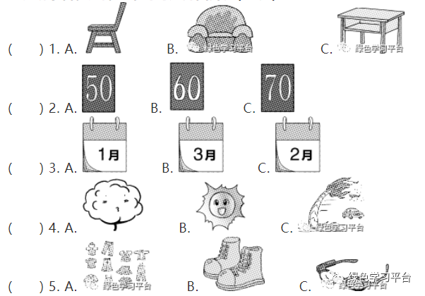 一、听录音,给下列单词排序。(填写序号)(10分)