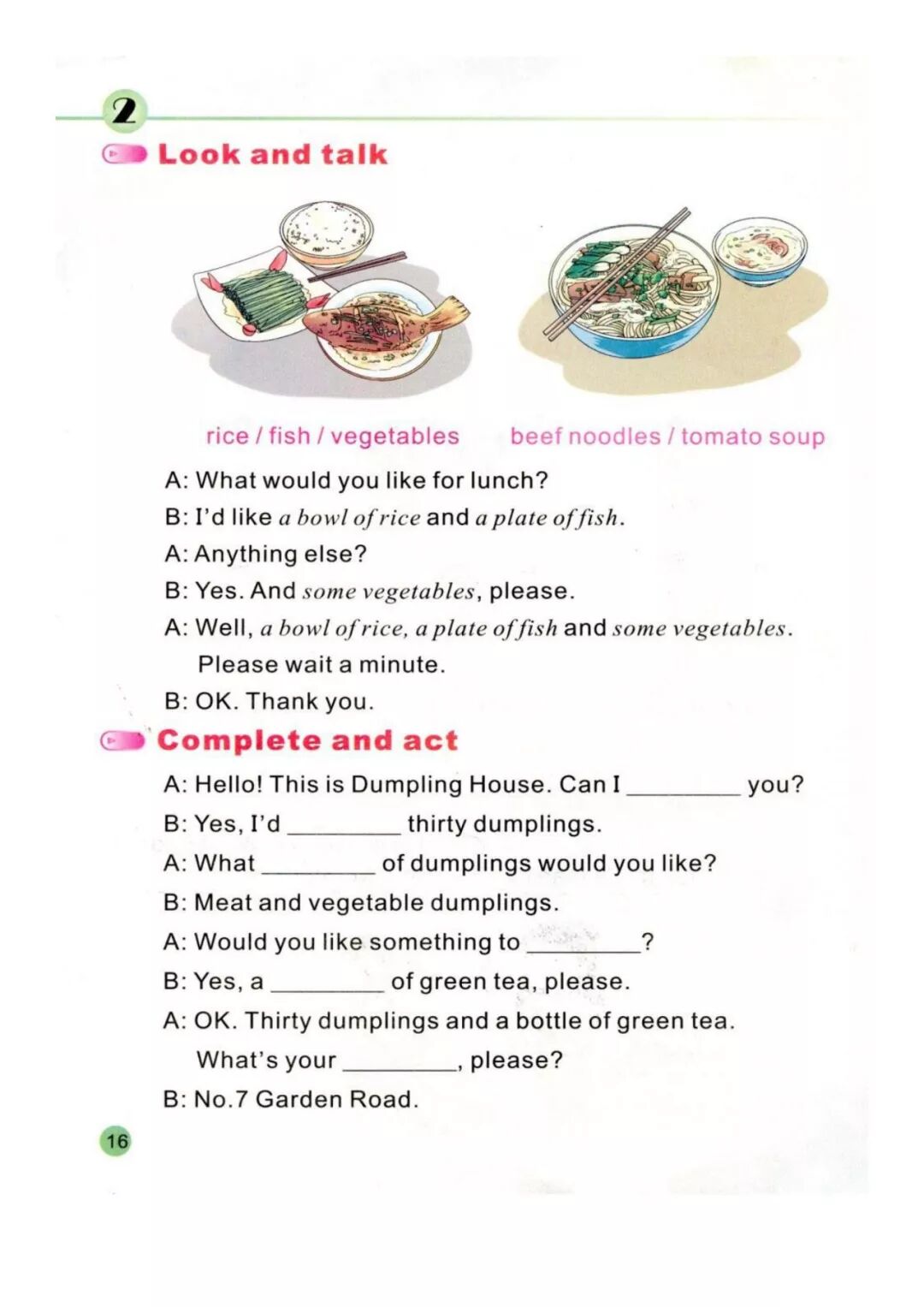 2. I’d like a bowl ofrice and a plate of fish.