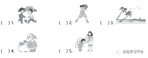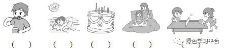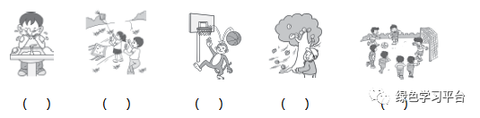 八、请匹配下列句子和图片,将句子的序号填入图下括号内。(5分)
